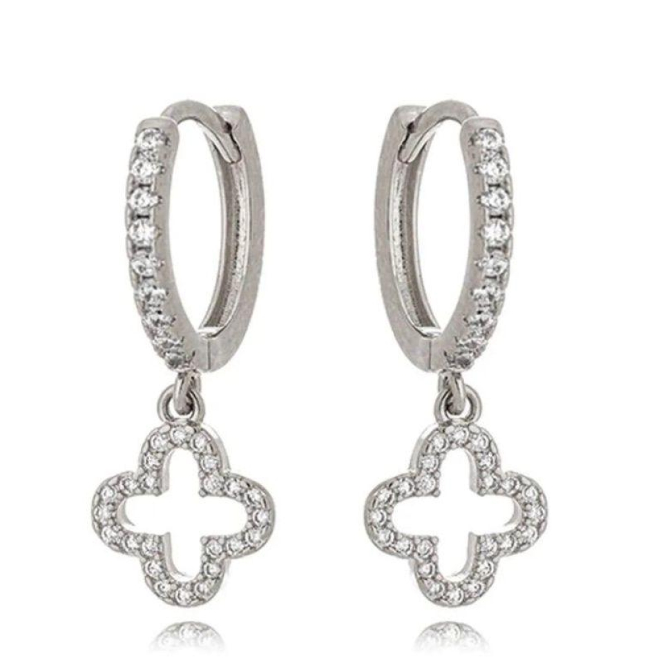 Brinco Argola Trevo Cravejado Prata...