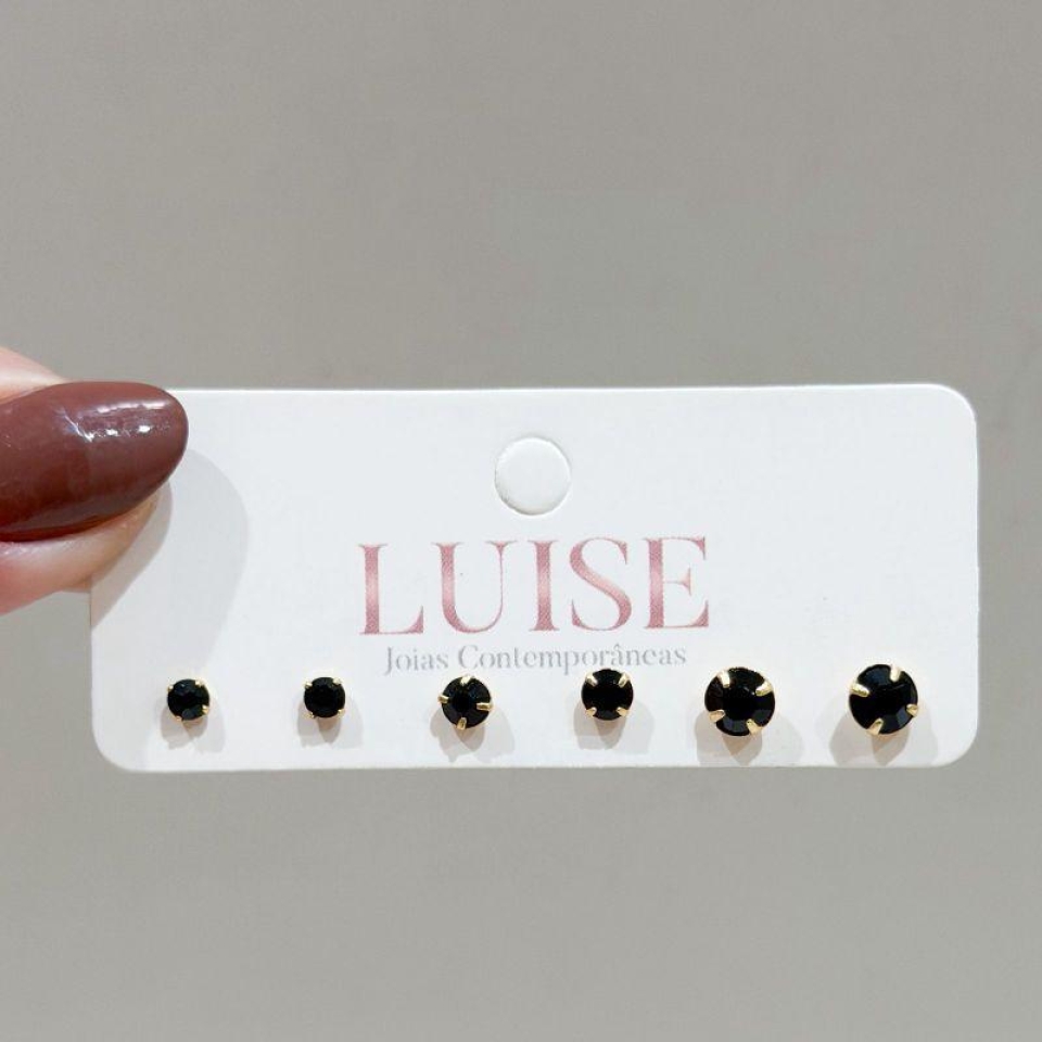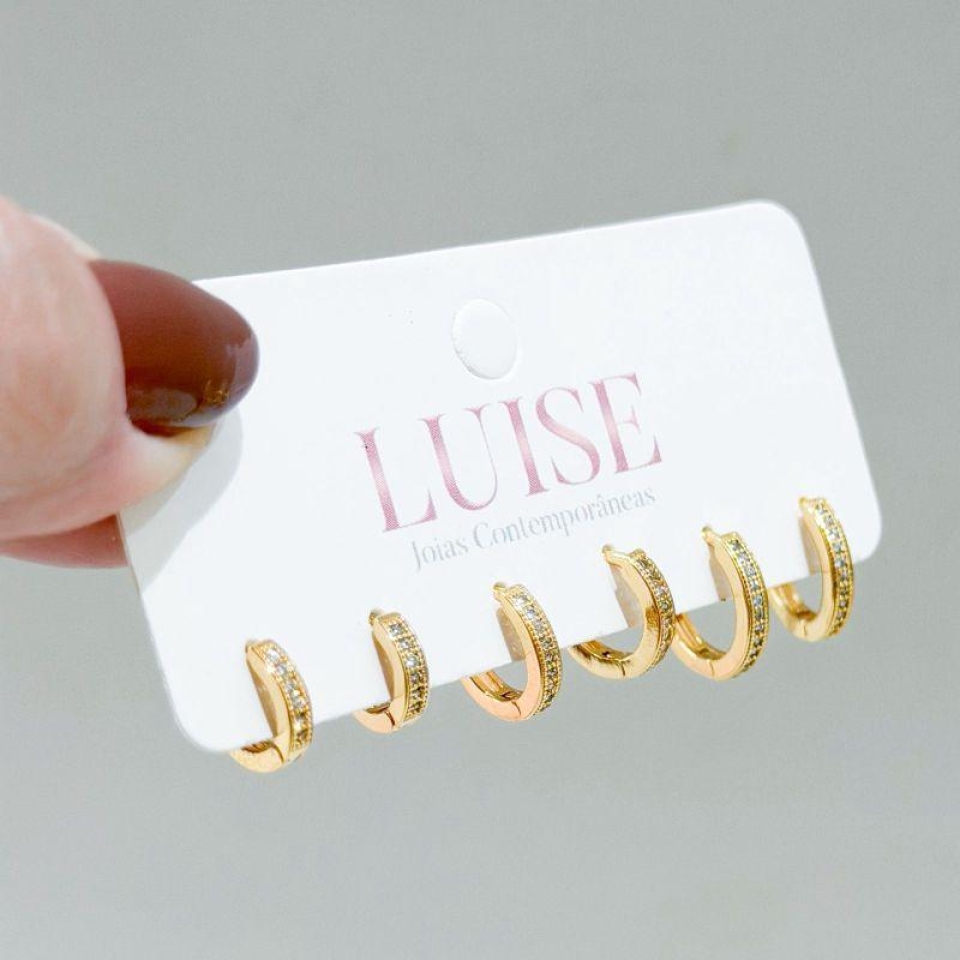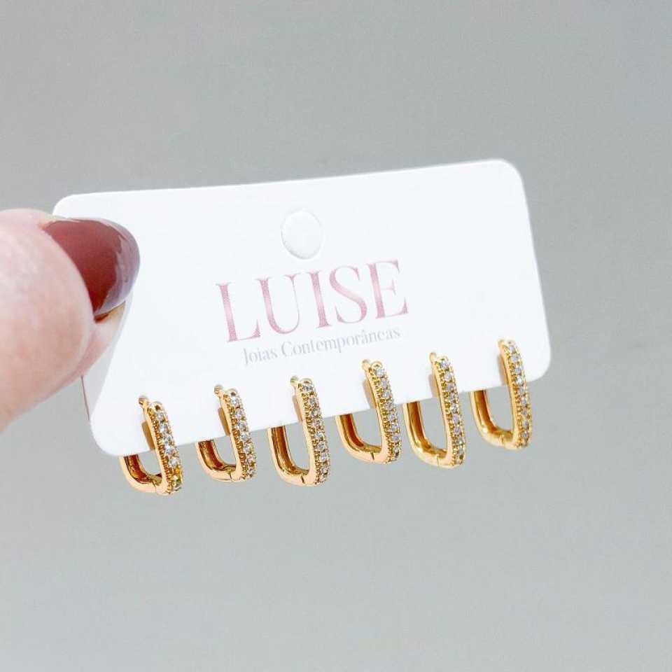 Brinco Trio Ponto de Luz Quadrado Ouro...