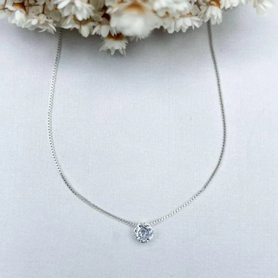 Mesmo em tempos de maximização, acessórios delicados como esse belo colar com ponto de luz continuam ocupando um espaço importante no look. No caso deste modelo o pingente possui tamanho de 0,5mm de diâmetro, delicado e atemporal.