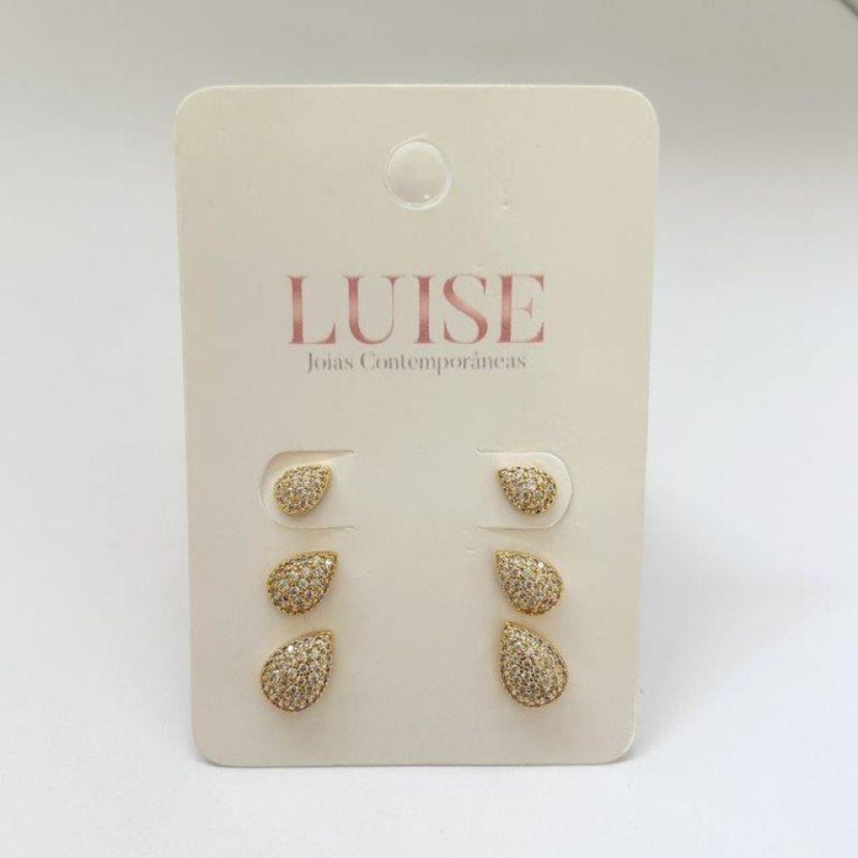 Brinco Trio Gota Cravejada Grande...