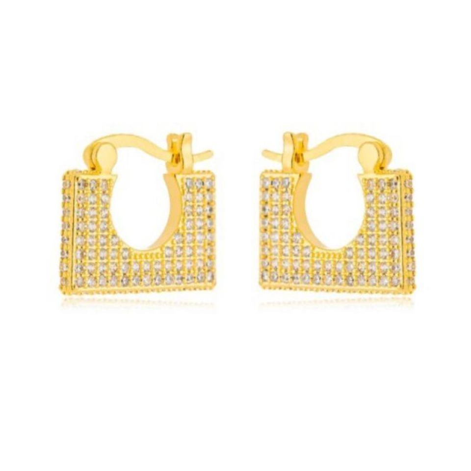 Brinco Argola Quadrada Cravejada...