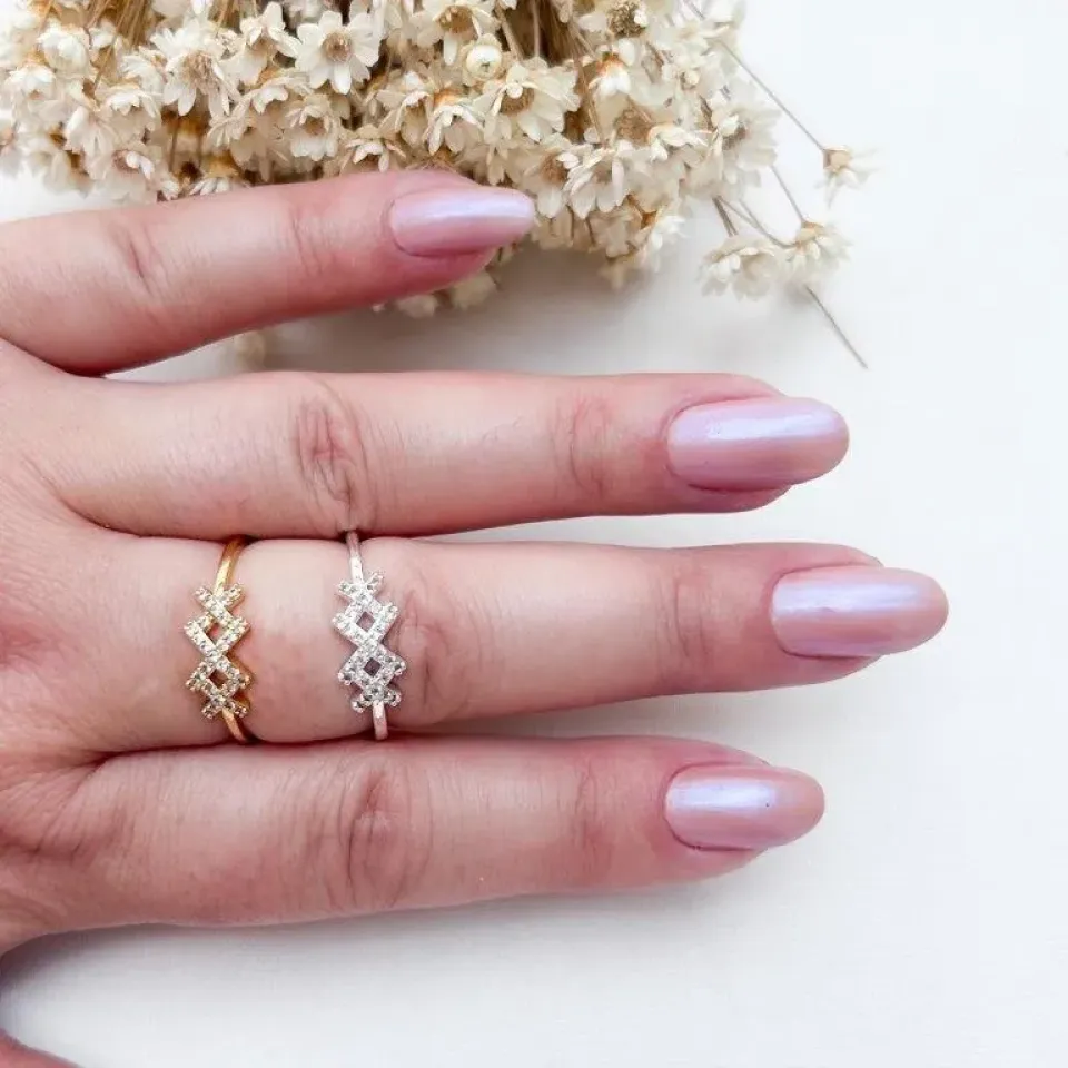 Anel Laço Liso e Microzirconias...